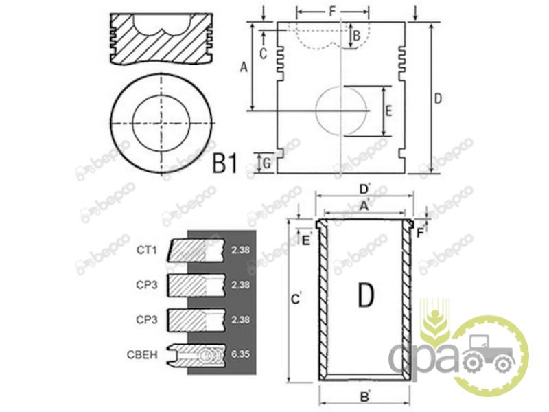 382 (Massey Ferguson 382N), 390 (-> U839079j 4 ring piston / With flame ring), 393 (-> U839079j 4 ring piston / With flame ring), 394 (Massey Ferguson 394F), 396 (Massey Ferguson 396C), 397 (-> U839079j 4 ring piston / With flame ring),