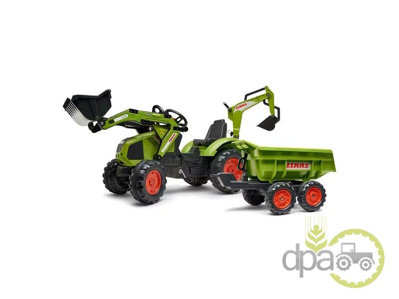Buldoexcavator Claas, replică exactă a modelului Axos 330, prevăzut cu încărcător frontal și excavator posterior