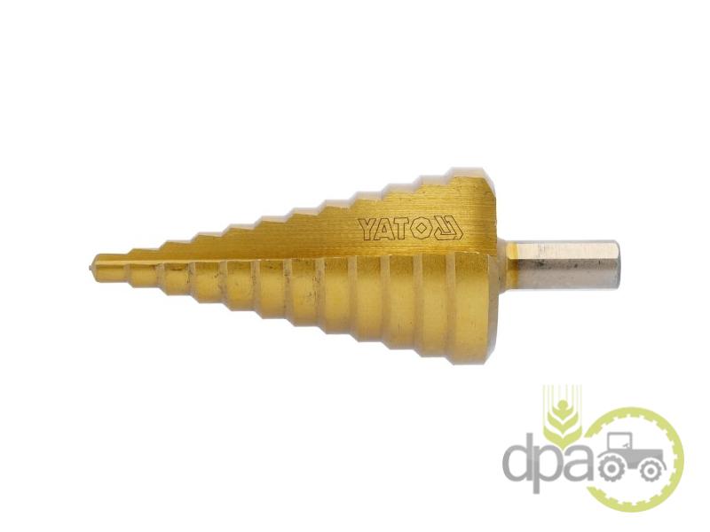 Burghiul are 12 trepte cu diametrul de 6, 8, 11, 14, 17, 20, 23, 26, 29, 32, 35, 38 mm.