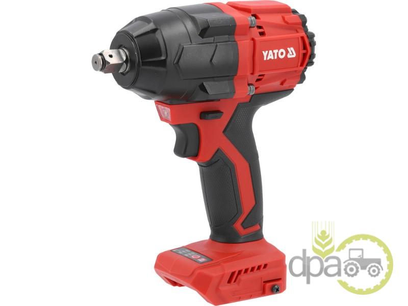 Cheie de impact fara perii alimentată de un acumulator din gama YATO 18V. Datorită dimensiunilor sale compacte și cuplului de 850 Nm, este potrivit atât pentru atelierele auto, cât și pentru șantiere. Greutatea redusă permite lucrul confortabil cu cheia ridicată deasupra capului. Cheia vine în set cu un adaptor de 1/2 la 1/4 inch.