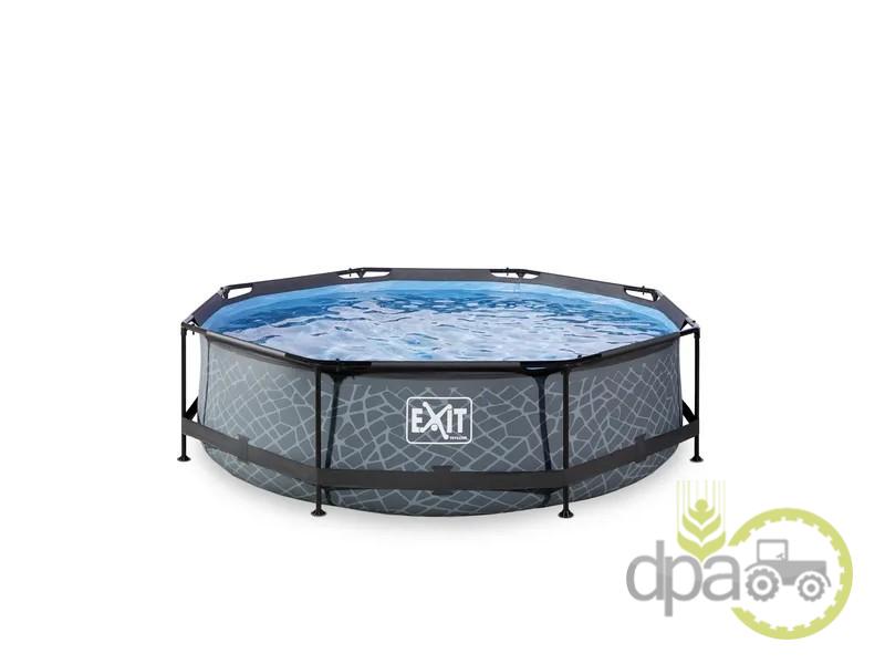 Piscina EXIT Stone cu diametrul de 300x76cm, este o piscină cu cadru rotund și model de piatra. Piscina este echipata cu o pompa de filtrare și picioare puternice pentru a asigura stabilitatea și o durata mare de utilizare.
